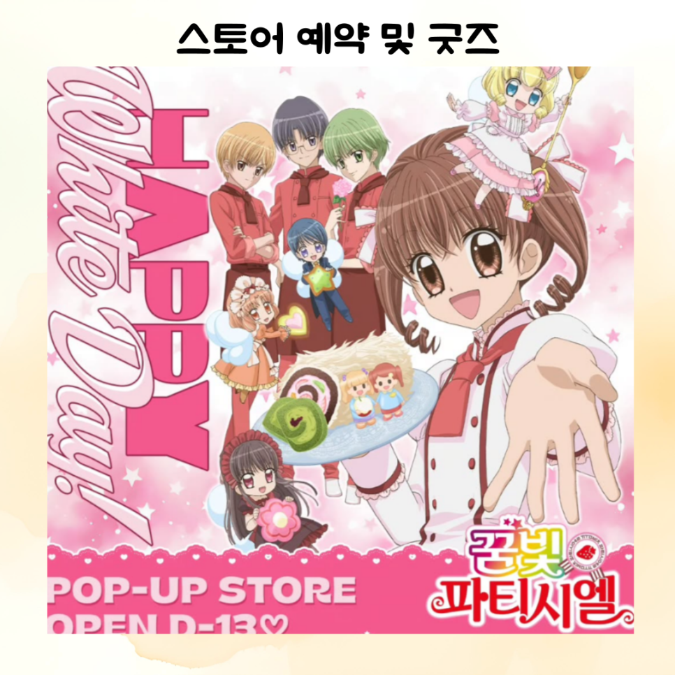 - 한정판 공식 굿즈: 작품 속 등장하는 다양한 디저트와 캐릭터 굿즈들이 준비되어 있습니다.