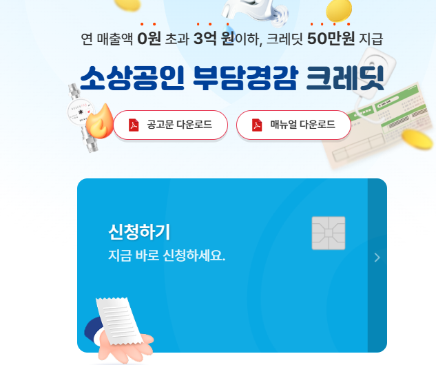 소상공인/자영업자는 상생지원금 외에도 50만원 ‘부담경감 크레딧’을 신청할 수 있습니다.