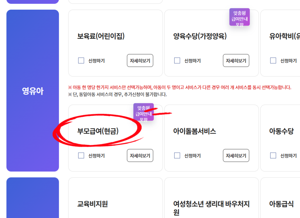 👉 2023년 1월 1일 이후 출생한 만 2세 미만 아동(0~23개월)이 지원 대상이며,