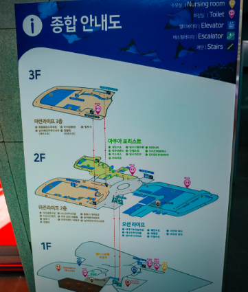 - 특징: 대형 수족관으로 대표 해양생물 전시·공연·체험 다채로움. 관람 예상 2시간.