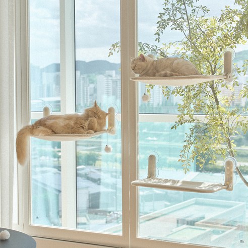 - 흡착식 창문 해먹 캣타워는 고양이 집사들에게 인기 있는 아이템이다.